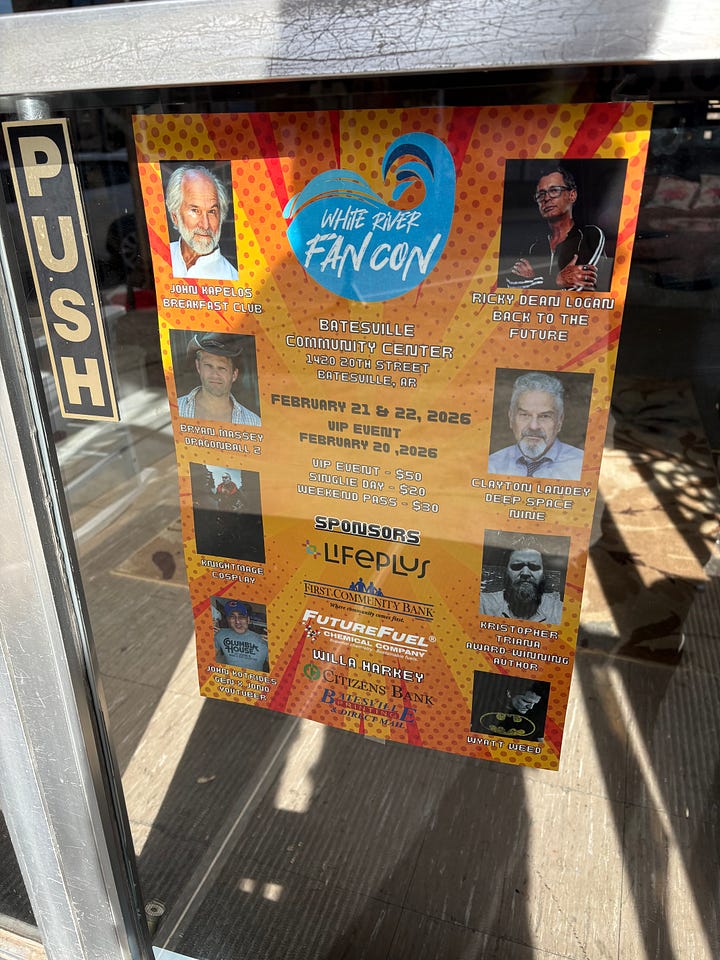 The convention had everything from vintage toys to movie screenings to homemade cookies, so if you’re anywhere near Batesville, I highly suggest checking out White River Fan Con. If you’re a local author or artist looking for a venue, it’s a fine place to set up a table. Be sure to give my best to Alicia and Joel!