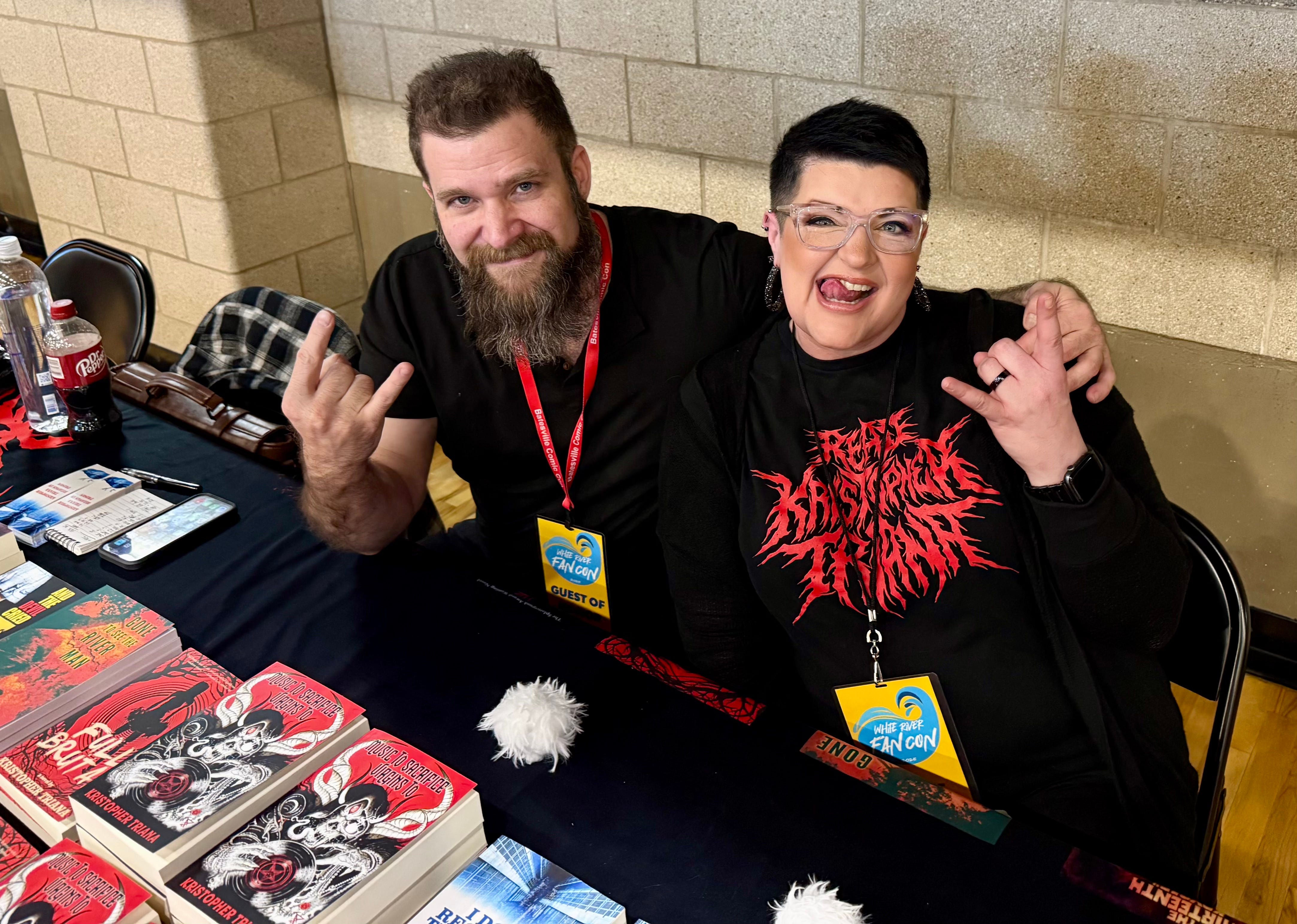 The first event I went to was White River Fan Con in Arkansas, a fundraiser for a local library. As someone who grew up with a love of reading and an empty wallet, my small town’s library meant the world to me, so if I can help one out, I do it. Though I’d been to four of the states that border it, this was my first time visiting Arkansas, flying into Little Rock and then being driven to the tiny town of Batesville, with its friendly people and quiet streets. As the author guest of honor, I was treated like royalty by the convention’s gregarious hosts, Joel and Alicia Williams. I can’t thank them enough for their overwhelming hospitality!